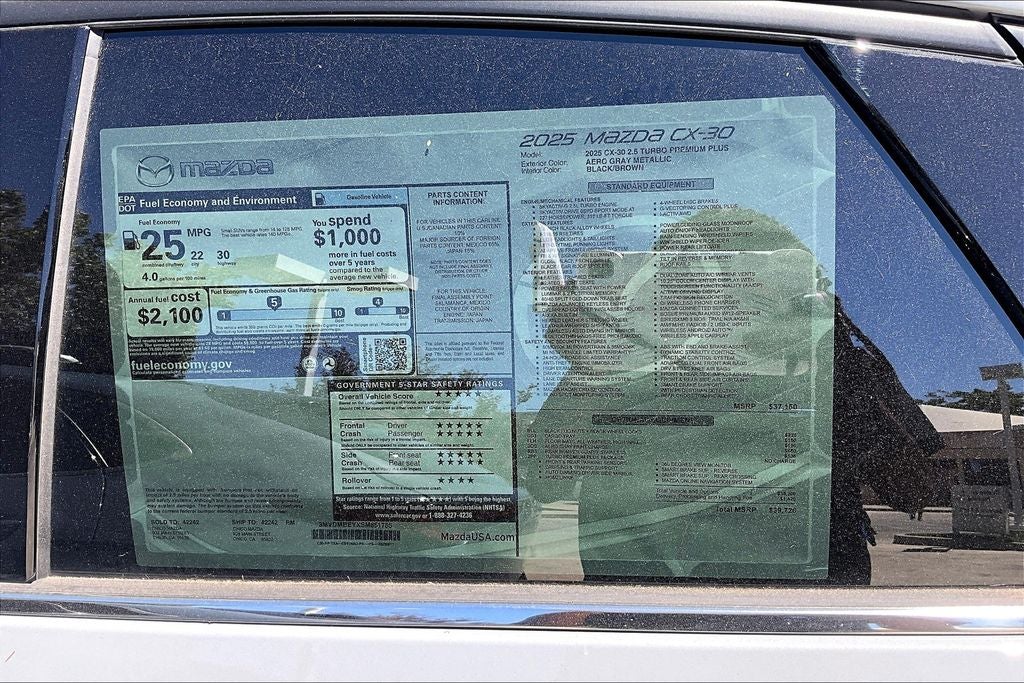 Whether you're seeking a versatile family SUV, a stylish daily commuter, or a premium adventure-ready companion, the 2025 Mazda CX-30 2.5 Turbo Premium Plus Package is the perfect choice. Experience the difference of Mazda's uncompromising craftsmanship and engineering excellence. Visit our showroom today and let us demonstrate how this exceptional vehicle can enhance your driving experience. Price includes: $1500 - Customer Cash. Exp. 02/02/2026 $500 - Customer Cash. Exp. 02/02/2026