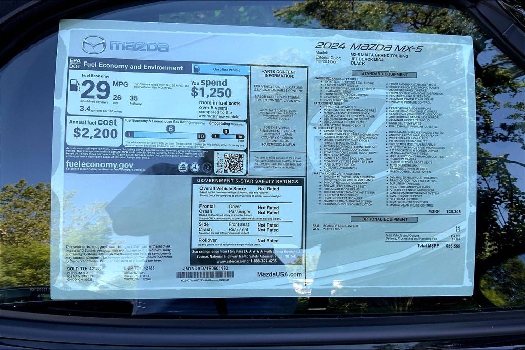 Discover the thrill of the open road in the 2024 Mazda MX-5 Miata Grand Touring. This captivating sports car is a true driver's delight, with a 2.0L 4-cylinder engine that delivers an exhilarating 26 city/35 highway MPG. The sleek, aerodynamic design not only turns heads but also enhances the vehicle's efficiency, allowing you to maximize your driving pleasure while minimizing your fuel consumption.